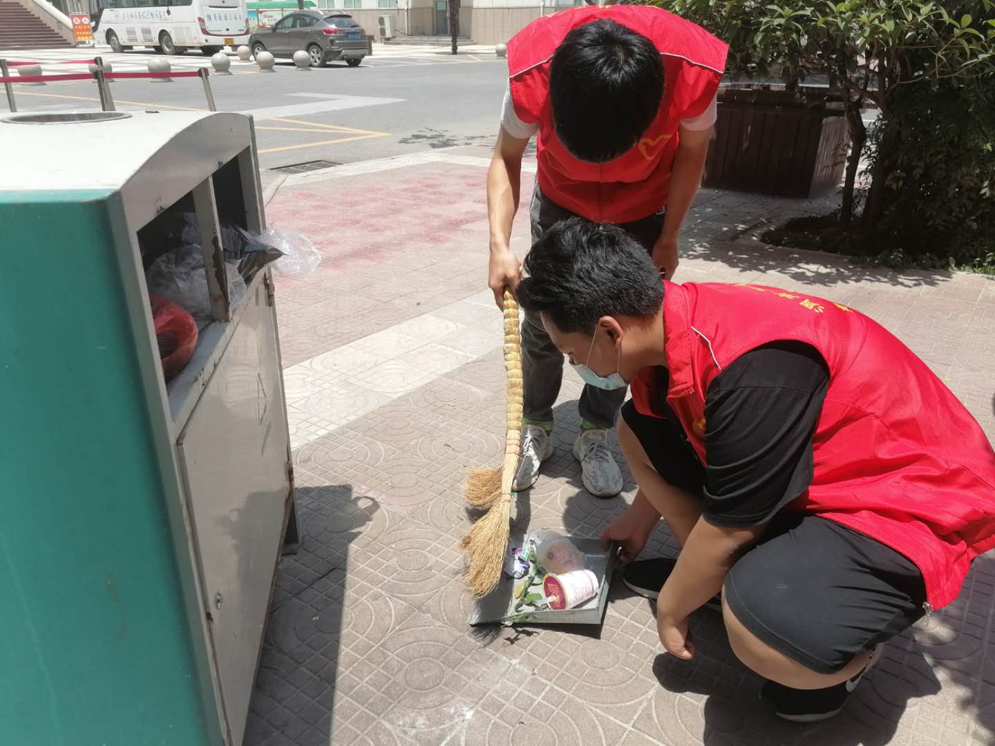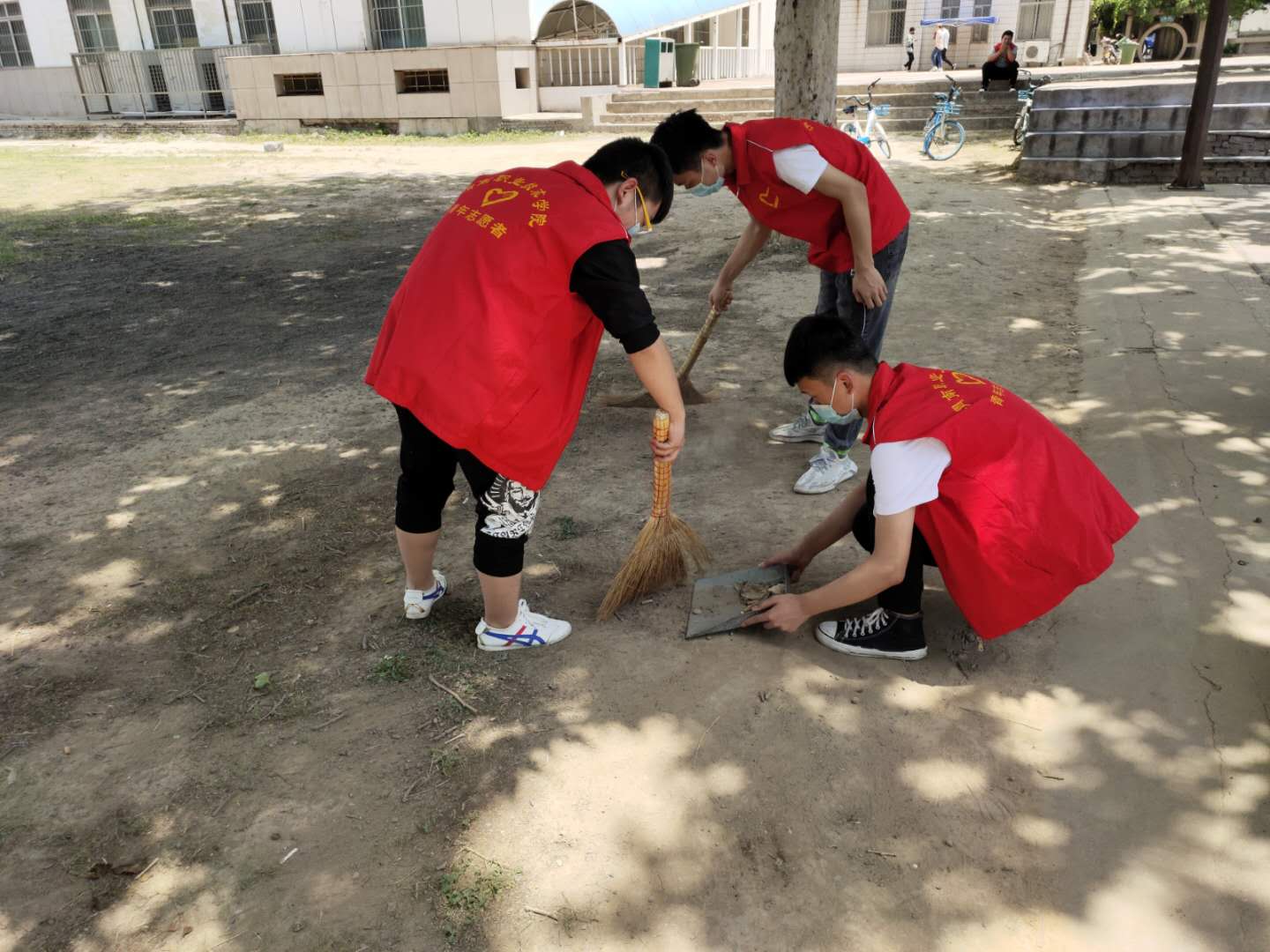 活动期间,志愿者们利用课余时间,身穿红马甲在指定地点用扫帚清理地上的树叶,用手捡拾花园内的垃圾。有的拿着扫帚,有的拿工具盛装,虽然天气炎热,但大家干劲十足。最终,在同学们的共同努力下,校园卫生焕然一新。