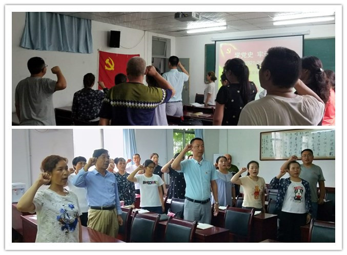 首先,关斌领誓,全体党员举起右手,面向党旗庄严宣誓,重温入党誓词;其次,组织委员李敏宁讲了近期总支有关工作,提出了具体要求和注意事项;最后总支书记王云侠同志给全体党员上党课,带领大家学习党史,系统地讲解了中国共产党的发展历程、中央主要领导人的变更、党的指导思想的丰富过程,要求全体党员学党史不忘初心,尽职履责,做好各自工作。