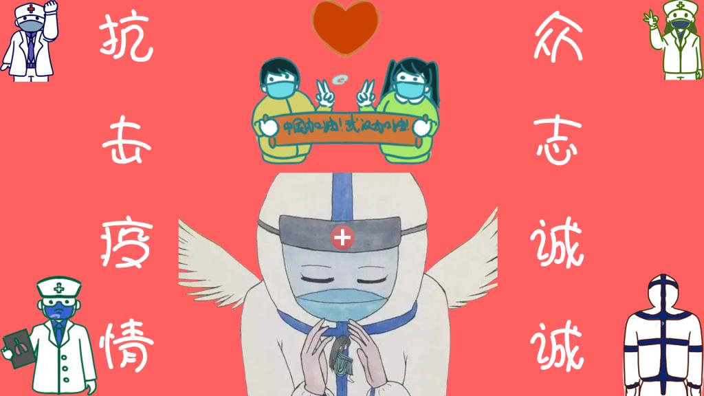 在所有作品中,最让人印象深刻的就是一副写着“致敬逆行者”字样的红色画面,白衣天使们身着厚重的防护服带着防护面具,走着相反的方向,即便是严峻的疫情他们也丝毫没有退缩的意思。他们的身影是寒冬里的一股暖流,是他们用执着和坚守诠释着爱的奉献。