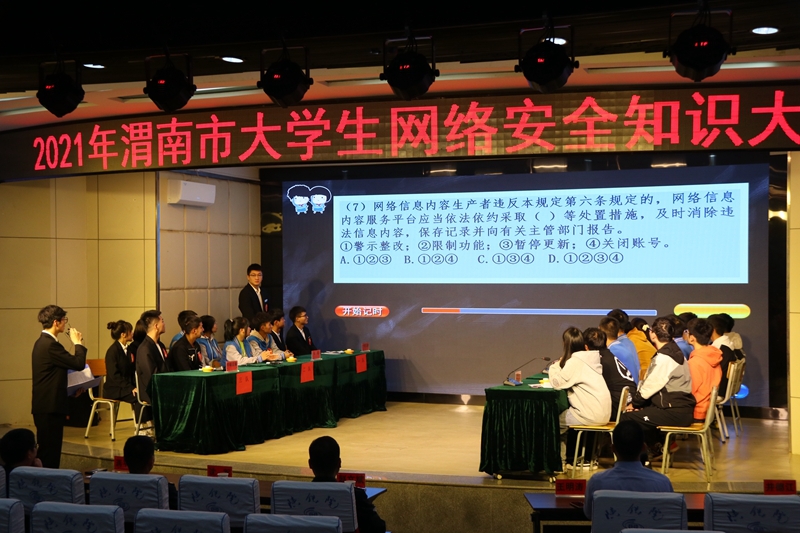 10月14日,公司l9193永利、图书馆(网信中心)共同组织本校员工参加了,由渭南市公安局主办、陕西铁路工程职业技术公司承办的2021年渭南市老员工网络安全知识大赛,此次网络安全知识大赛在陕西铁路工程职业技术公司临渭区报告厅举行,l9193永利、渭南师范公司、陕西铁路工程职业技术公司的共6支代表队参加了比赛。渭南市公安局副局长沈军 、渭南市公安局网安支队政委赵利军及渭南市网信办网络安全科科长王明涛等相关领导参加了活动。