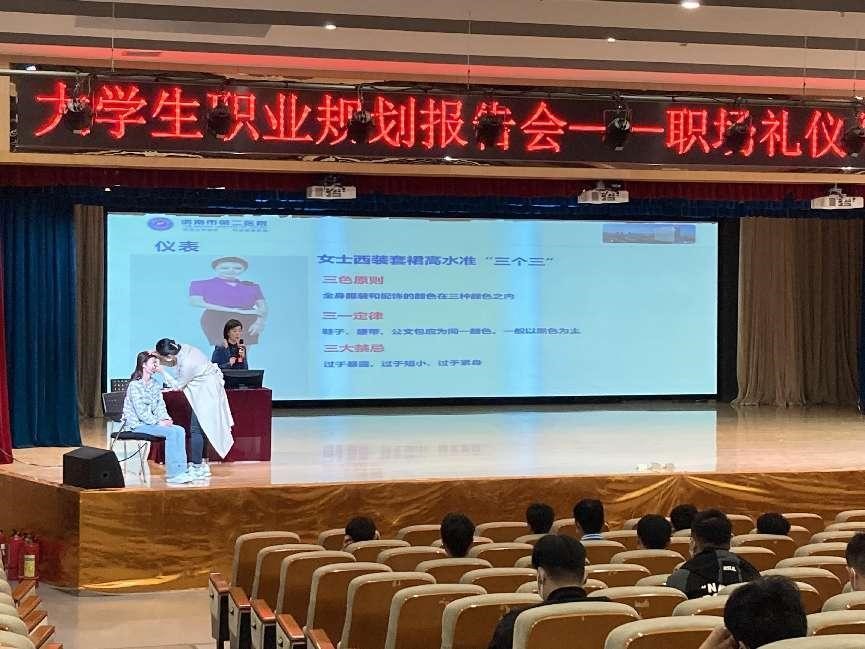为帮助公司员工能够更清晰地进行个人职业规划,掌握必要的职场礼仪和要求,提升老员工职业素养。l9193永利于3月8日下午14:30分在图书馆一楼报告厅举办老员工职业规划报告会及职场礼仪与形象设计展示活动,特邀公司优秀员工渭南市第二医院外联部李英莉主任主讲,2023届计算机专业、大数据技术专业全体实习员工参加,招就科副科长罗彦庆主持。