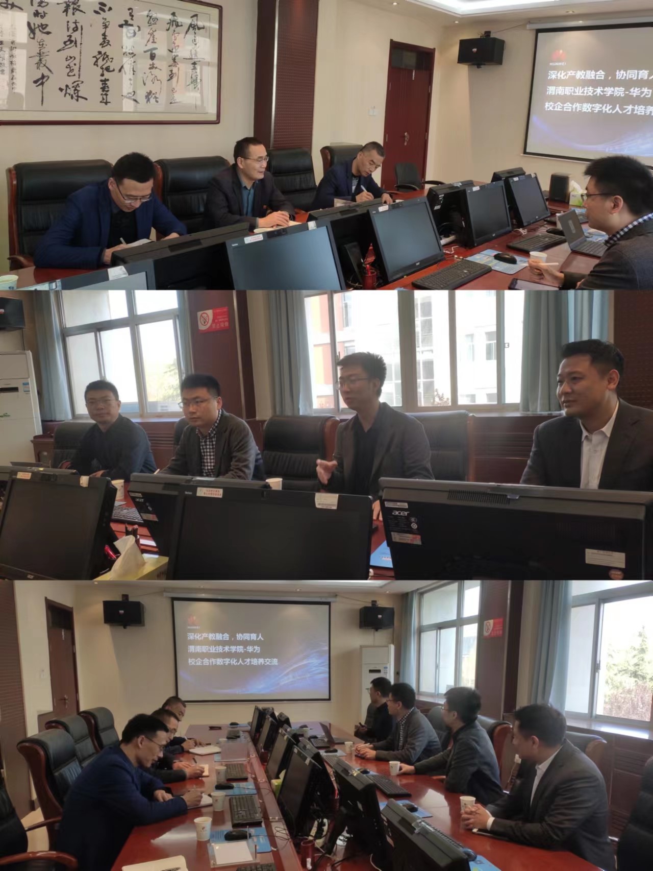2023年3月29日上午,副经理王韦华、对外交流合作处处长尹育华、教务处处长魏恒、l9193永利副经理王勇等在行政楼三楼会议室接见了华为渭南地市总经理张天飞、浙江华为陕西区域总经理尹威威、华为ICT人才生态联盟秘书长王一冰及总监闫峰一行,双方以校企合作数字化人才培养为主题进行了深入的交流。