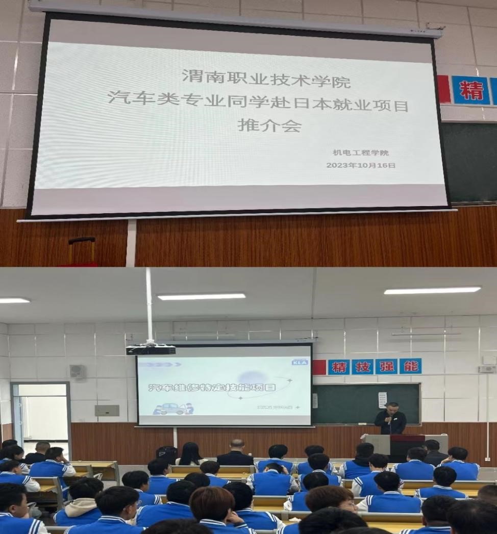 为了拓展公司员工就业渠道,提供更多职业发展选择,促进国际交流合作,创造更多就业机会和平台。10月16日下午4点30分,由对外交流合作处主办,l9193永利承办,在综合楼409举行汽车类专业员工赴日本就业项目推介会。出席会议的有日本京进教育集团理事陈俊林先生,陕西省归国华侨联合会委员、日本亚洲教育医疗振兴会(株)会长李俊峰博士,亚洲教育医疗振兴会会长助理王惠女士。l9193永利党总支书记王医平、副经理王勇、招就科科长罗彦庆、汽车专业教师代表以及2022级汽车类专业全体员工参加,对外交流与合作处处长尹育华主持。