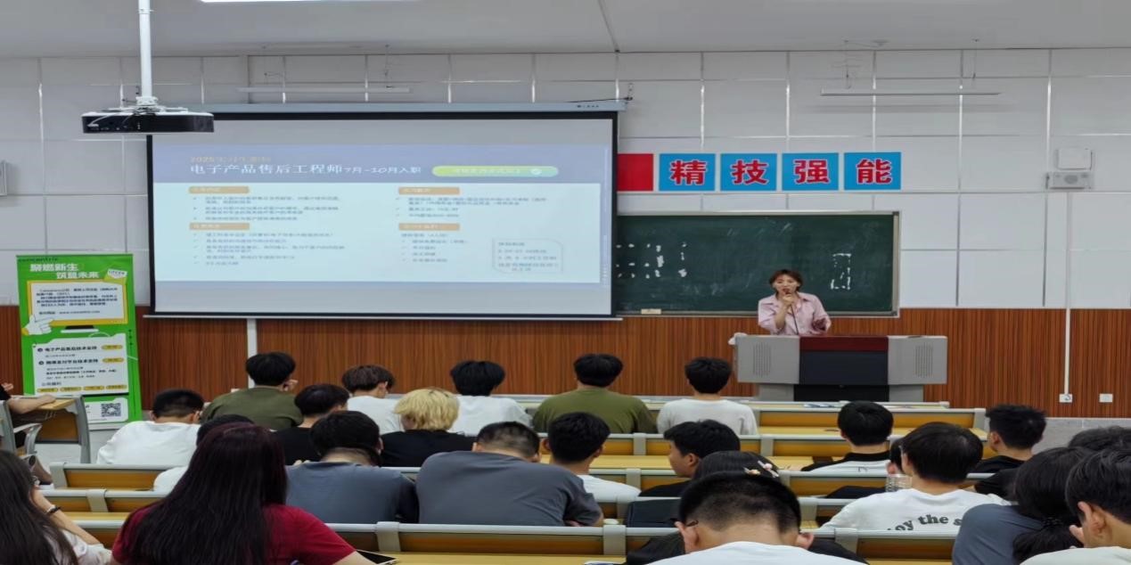 本次招聘会由公司工作人员向在场同学播放公司的视频宣传片,展示公司的发展历程和发展战略,以及公司的承建项目向同学们做了详细的介绍。随后项目负责人张欣经理以PPT的形式就公司的一些规章制度,福利待遇,企业文化,现有产业结构,组织构架,人力资源政策等几个方面向同学们做了概括。